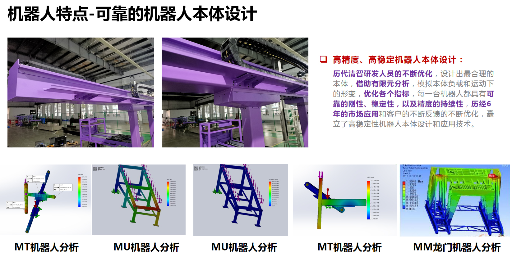 3、高穩(wěn)定性:清華大學(xué)團(tuán)隊歷經(jīng)7年研發(fā)和市場應(yīng)用,機(jī)身設(shè)計通過了數(shù)學(xué)建模、FEA、FDS等科學(xué)化的分析和優(yōu)化,累積了成熟的研發(fā)技術(shù)和應(yīng)用技術(shù),機(jī)器人制造均采用標(biāo)準(zhǔn)化和批量化制造,工藝化裝配,嚴(yán)格的出廠檢驗標(biāo)準(zhǔn),成就高穩(wěn)定性的機(jī)加工產(chǎn)線,滿足全年24*365天的穩(wěn)定運(yùn)行;