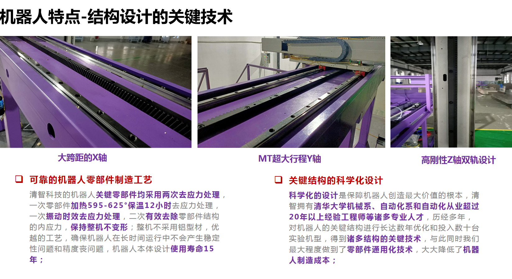 3、高穩(wěn)定性:清華大學(xué)團(tuán)隊(duì)歷經(jīng)7年研發(fā)和市場(chǎng)應(yīng)用,機(jī)身設(shè)計(jì)通過了數(shù)學(xué)建模、FEA、FDS等科學(xué)化的分析和優(yōu)化,累積了成熟的研發(fā)技術(shù)和應(yīng)用技術(shù),機(jī)器人制造均采用標(biāo)準(zhǔn)化和批量化制造,工藝化裝配,嚴(yán)格的出廠檢驗(yàn)標(biāo)準(zhǔn),成就高穩(wěn)定性的機(jī)加工產(chǎn)線,滿足全年24*365天的穩(wěn)定運(yùn)行;