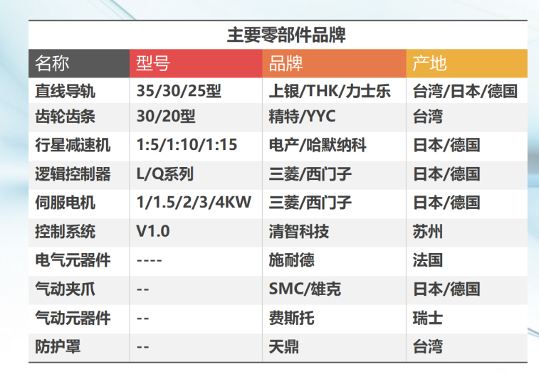 5、高速、高效率:全系標(biāo)配清智智能系統(tǒng)控制,標(biāo)準(zhǔn)4軸聯(lián)動(dòng),采用絕對(duì)值高扭矩伺服電機(jī)驅(qū)動(dòng),X軸最快工作速度150M/分鐘,同時(shí)具備2.3G加速度,讓產(chǎn)線效率更快。